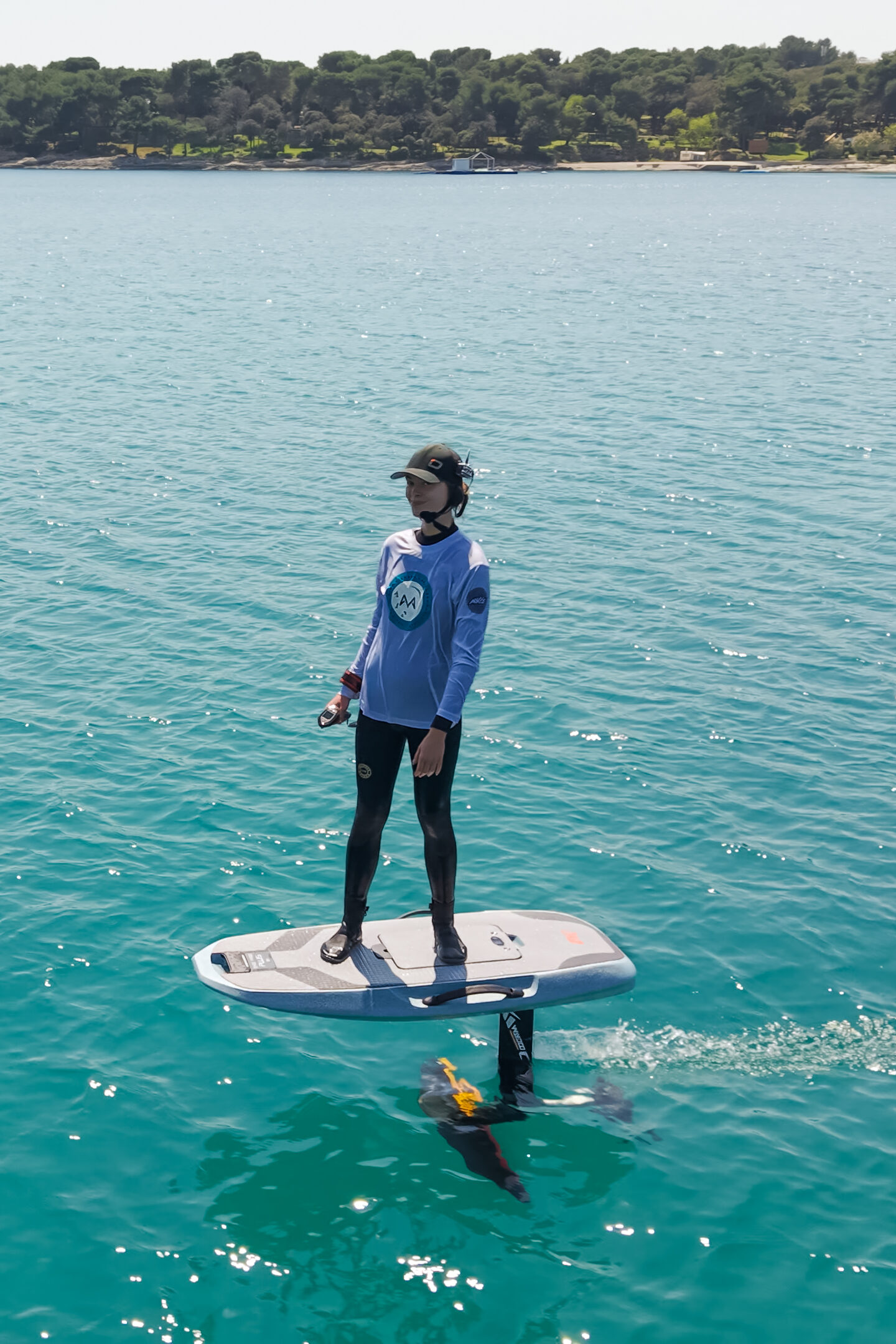 Electric Foil board powered by a motor and remote in your hand that lifts you up on foil with no wind or waves